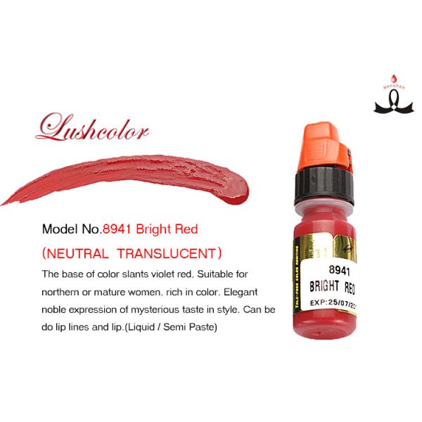 Bright Red (8941): liquid. Brightly colored dark red ground color pale red-violet, suitable for northern or mature women, rich in color. Elegant noble expression of mysterious taste in style. Do lip lines and lip can be.